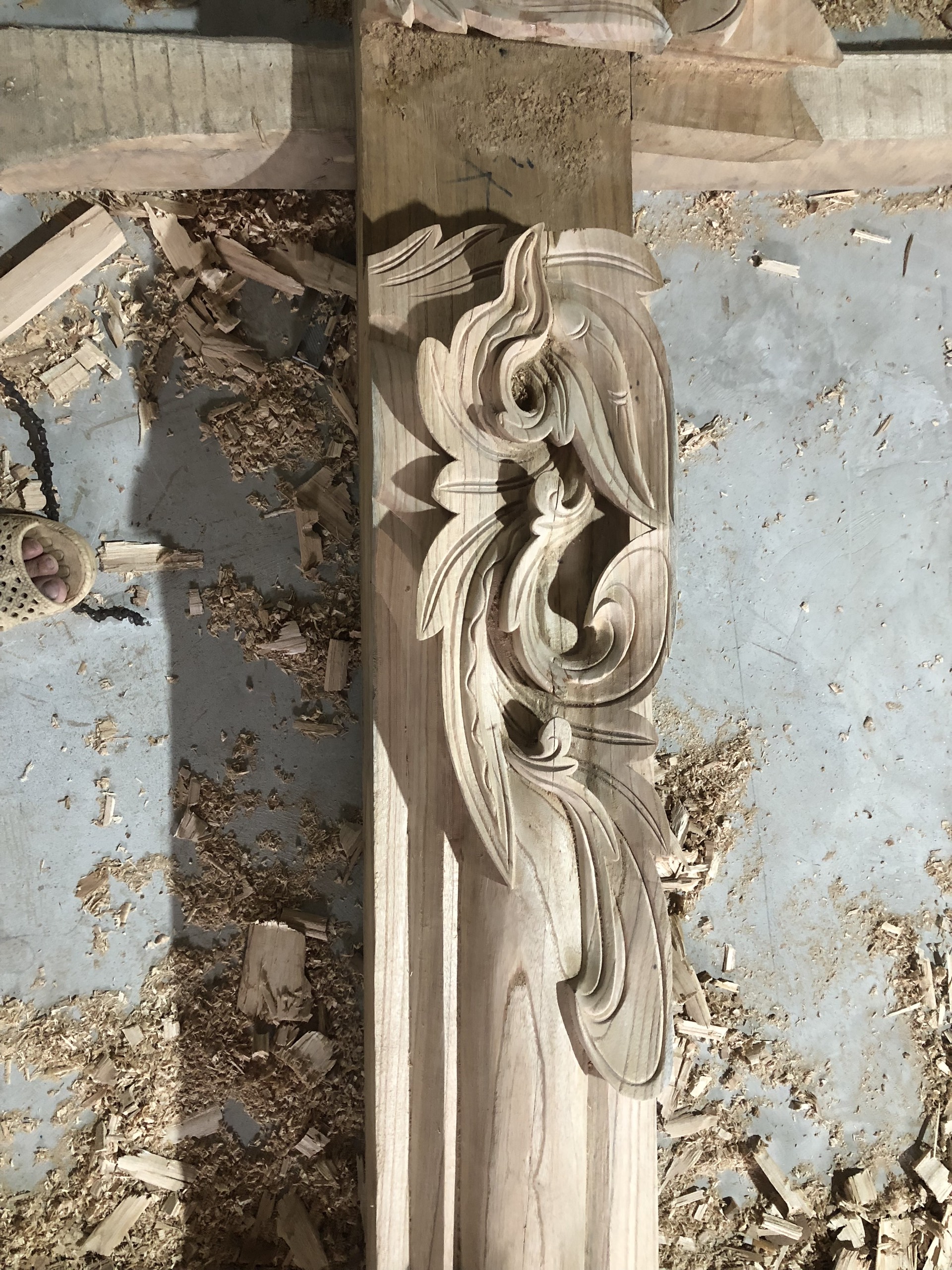 Những nét đục, nét sàm tinh xảo tại xưởng thi công Nhà Gỗ Dân Gian